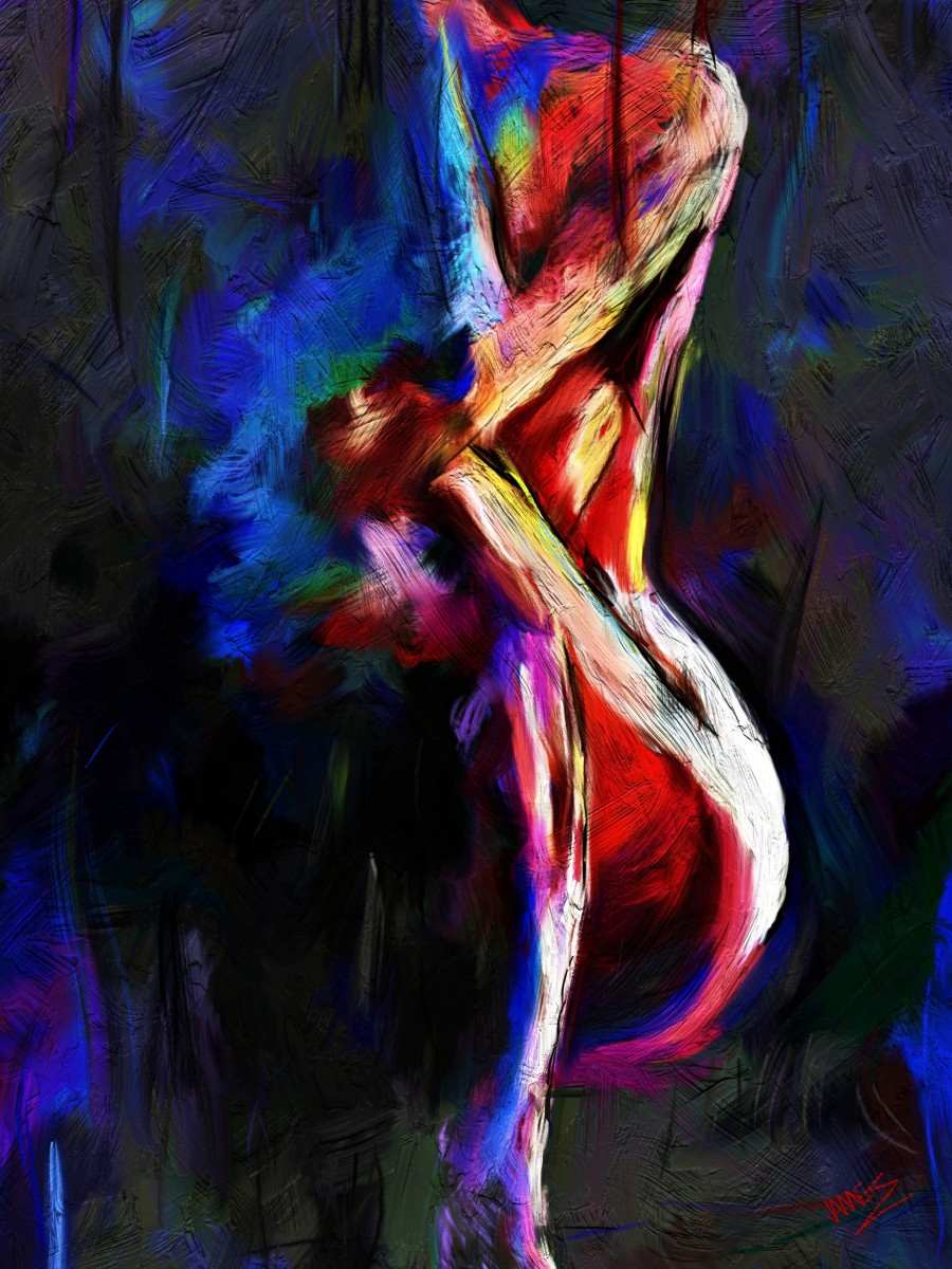 This artwork presents a striking and evocative portrayal of the human form. The piece captures a delicate balance between realism and abstraction, with soft, flowing lines and a muted colour palette that emphasises the natural beauty and elegance of the subject. The use of light and shadow creates a sense of depth and dimension, adding to the overall allure of the composition. This contemporary nude artwork invites viewers to appreciate the subtle intricacies of the human body, celebrating its grace and form in a sophisticated and tasteful manner. Perfect for adding a touch of modern elegance to any art collection or living space.