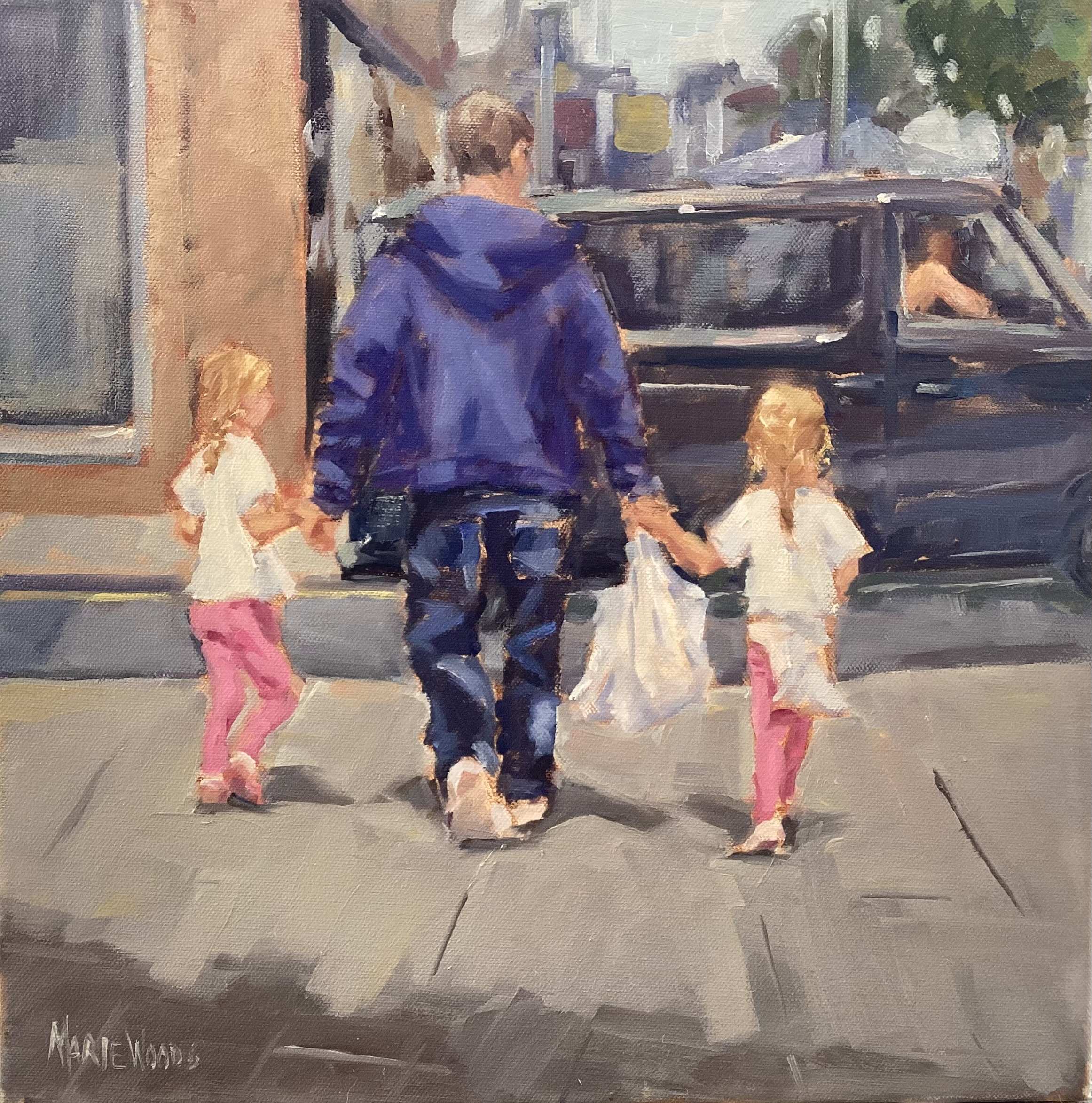 This artwork, titled “Shopping with Dad,” offers a charming and whimsical depiction of a father engaged in a day of shopping. The piece uses bright, playful colours and expressive details to highlight the character’s endearing and slightly overwhelmed expression as he navigates through the shopping experience. The artist’s use of light-hearted humour and relatable subject matter creates a warm and inviting scene that resonates with viewers. This delightful portrayal captures the everyday joys and challenges of family life, making it a perfect addition to any space that appreciates both humour and heart.